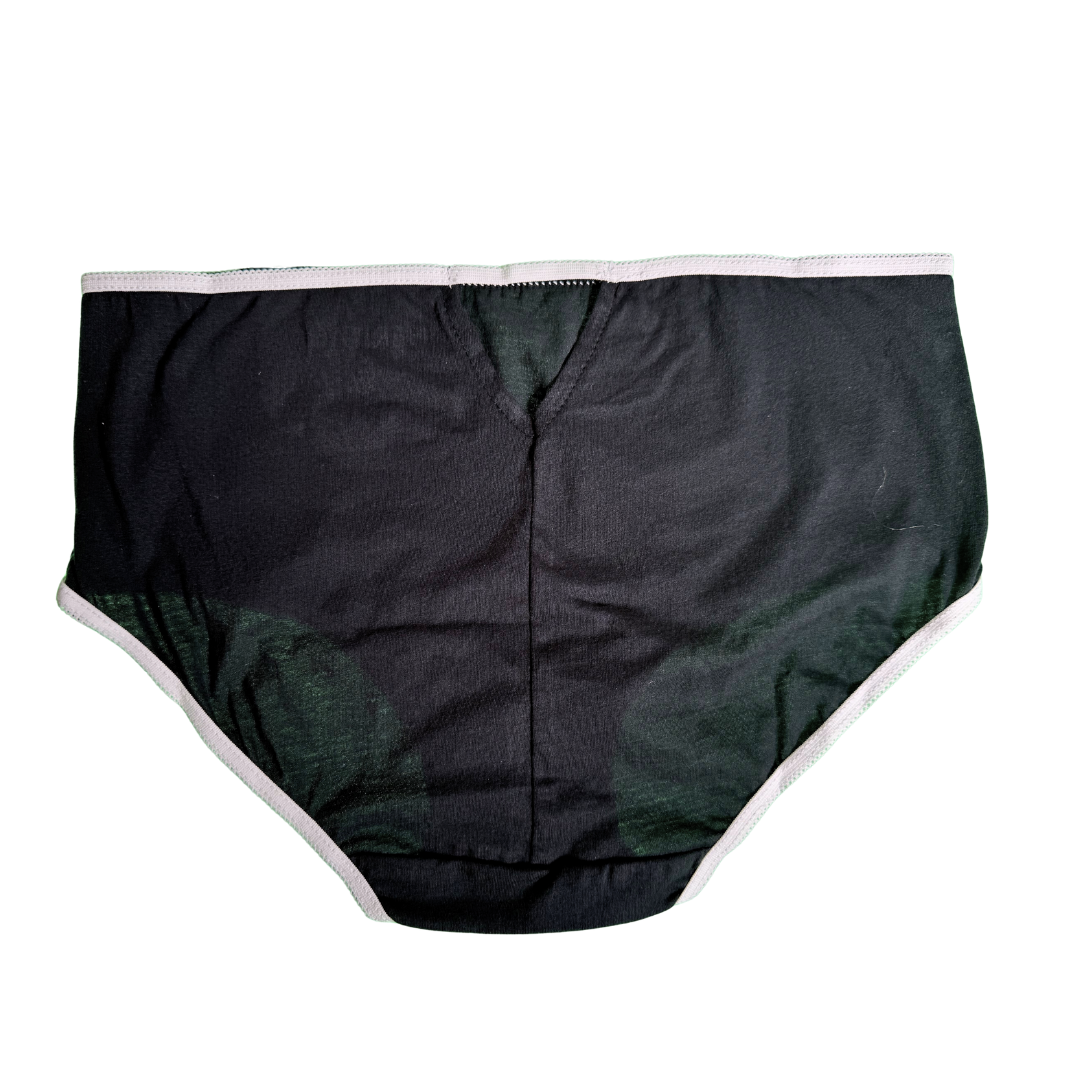 A modern classic with a quiet edge. The Icon is a full-coverage brief reimagined with a peekaboo keyhole cutout at the back. The Icon's trim is made of recycled polyamide and natural rubber picot edging.